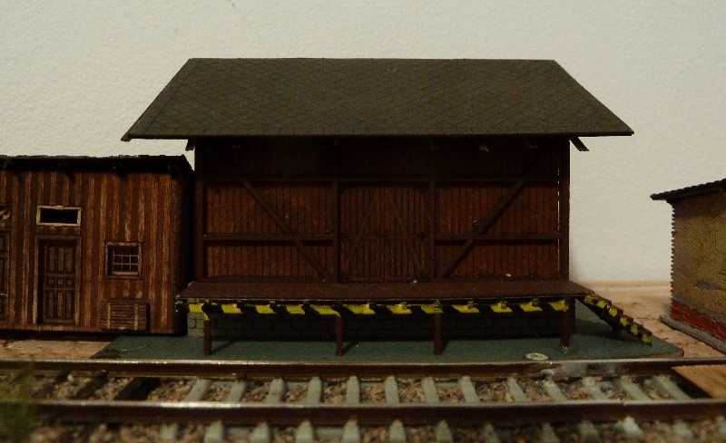 Kde zas bude stará kolej s dřevěnými pražci a zasviněným štěrkem. Na hranu nakládací rampy jsem párátkem domaloval ochranné šrafování.