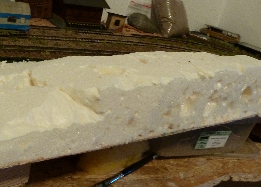 Naštěstí si můžu model postavit jak chci, takže hurá zpět na nudli 🙂 Za kusou kolejí jsem začal připravovat prostor pro rampu.