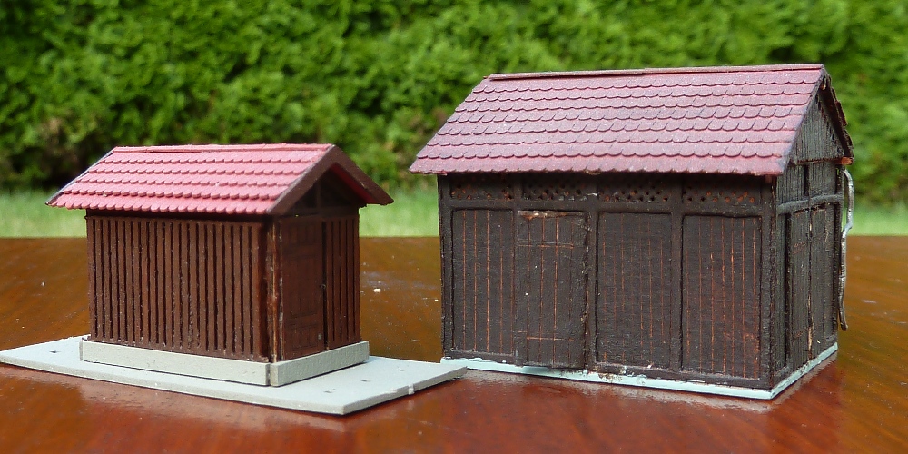 Kromě toho, že od KB jsou vyšší, jsem je dělal i dřív a trochu jsem bojoval s barvením, nejdříve hnědá tempera a když to nebylo podle mých představ, přetřel jsem to celé olejovkou. Tou jsem potom barvil všechny zbylé „dřevěné“ stavby, ať už Sienou, nebo Umbrou pálenou.