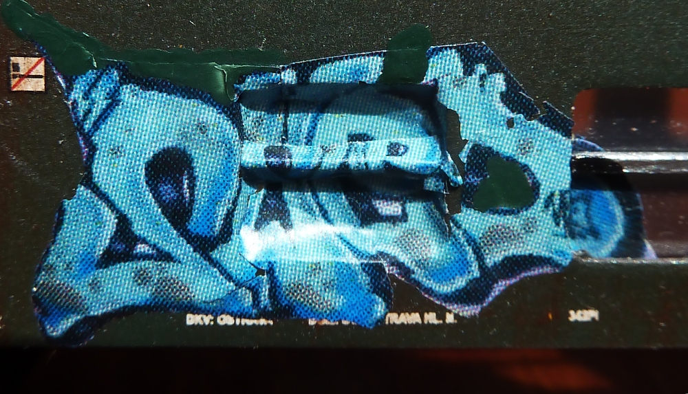 Áčko jsem dělal dřív, než obtisky, takže jsem grafitti musel nanášet přes příčku. Tady se to ještě povedlo (v levé horní části jsem jenom zaretušoval špatně vystřižený obtisk)…